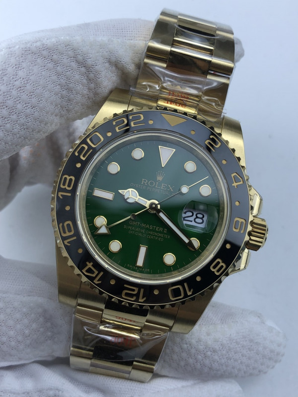 (준비완료/특급배송)NO.1055/GM공장 롤렉스 GMT마스터 옐로우골드 그린다이얼