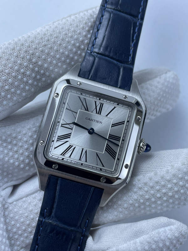 (준비완료/특급배송)NO.1410/AF공장 산토스31MM 실버다이얼 블루악어가죽스트랩